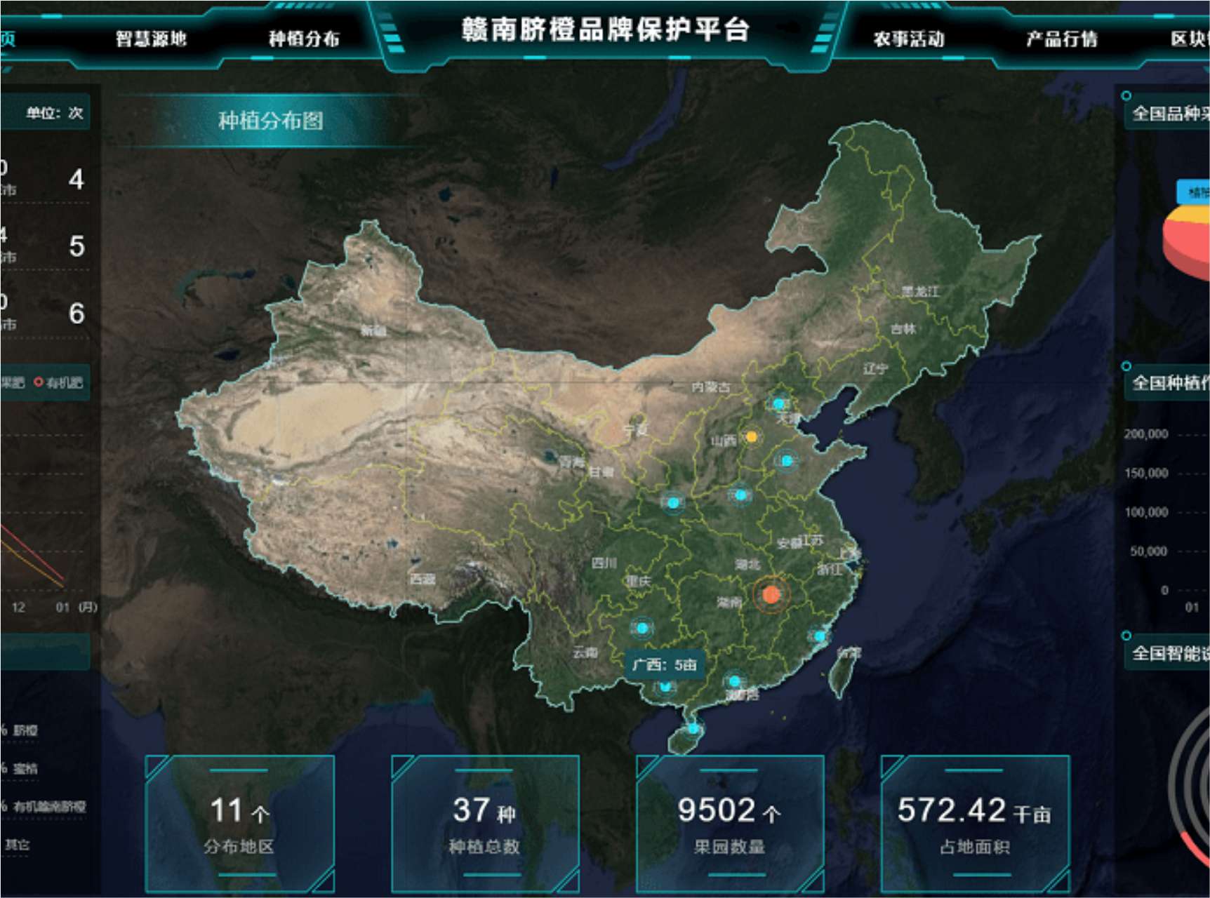 目前國內首個單品農業全產業鏈大數據平臺,也是國內柑橘產業首個大數據應用平臺。橙中城大數據中心,目前是贛州市第一個贛南臍橙大數據中心。作為整個果業的數據指揮部也將打造成整個贛南臍橙產業乃至中國柑橘產業的指揮部。以大數據技術區塊鏈技術、互聯網技術、移動互聯網技術為依托,全面附能贛南臍橙產業,實現電腦端和手機端數據同步。